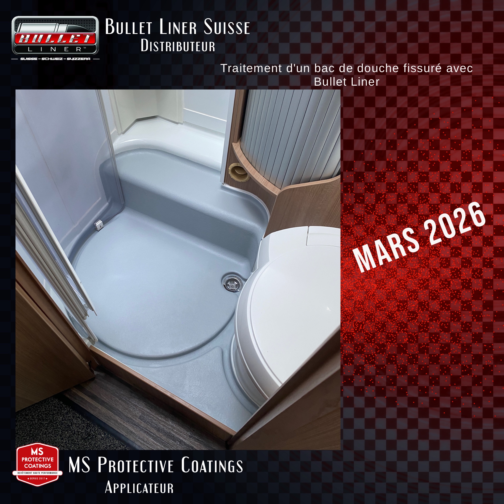 Nouvelle vie pour le bac à douche de ce camping-car grâce à Bullet Liner. … Voir plusVoir moins